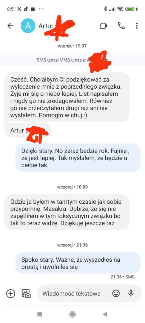 W końcu jego męczenie dupy sprawiło, że dałem mu zielone światło na kontakt z jego ex kobietą. Wychodzę z założenia, że człowiek najlepiej uczy się na własnych błędach i jak chce tak bardzo się przekonać – jak odzyskuje się byłe kobiety, to niech się nauczy na własnych błędach, które będą go bolały. I z początku kontakt nawet lekko zatrybił. Jego była w pozytywny sposób zareagowała na jego osobę. Była ciekawość, pytała się co u niego, ciągnęła rozmowę. Można powiedzieć, że było dobrze, ale skoro było tak dobrze, to dlaczego było tak źle?