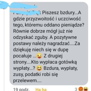 Niestety ludzie o takiej mentalności – pazerności, właśnie tak mają. Ludzie, którzy zaglądają w kieszeń temu przedsiębiorcy, gdyby byli na jego miejscu – ale niestety nigdy nie będą, to nie wiadomo czy powiedzieliby chociaż słowo – dziękuję – w takiej sytuacji. A wymądrzać się zza monitora, każdy potrafi. Tym bardziej jak jakaś sprawa personalnie go nie dotyczy. Wtedy każdy jest mądry. Wtedy każdy jest ekspertem.