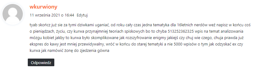 Ale to jeszcze nic. Można było również napotkać komentarze w stylu: